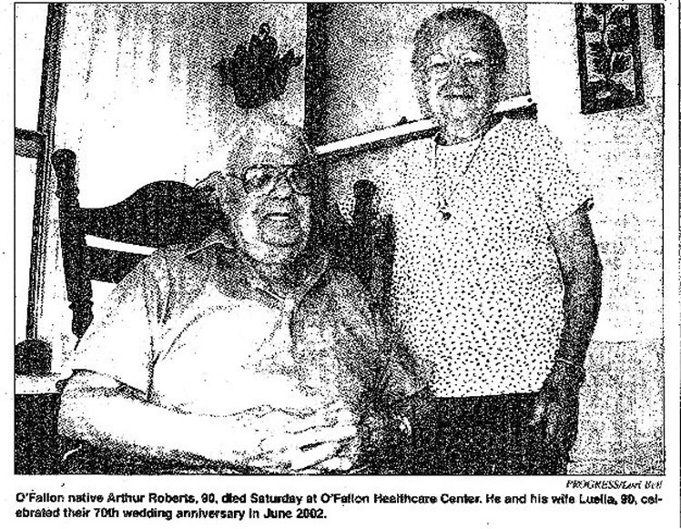 Arthur, a native of O'Fallon, was buried Tuesday at Lakeview Memorial Gardens in Fairview Heights. He was preceded in death by his parents James and Fannie Roberts, two brothers Morris and Charles Roberts, and a daughter Shirley Ann Roberts Wilhoit.