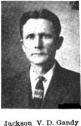 JACKSON VAN DORN GANDY, of Waynesboro. Wayne County, Mississippi, was born November 28, 1876, at Shubuta, Miss., the son of Evan Gandy and wife, Martha (Watts) Gandy. His grandfather was a native of South Carolina who served in the Confederate army throughout the Civil War. Mr. Gandy obtained his early education in the country schools of Wayne County; attended Eucutta High School for five years, after which he taught several years. In 1908, he was elected Superintendent of Education for Wayne County, serving four years; on November 7, 1911, was elected Representative in the State Legislature, where he served his constituents capably and faithfully. He is a member of the Baptist Church, a Mason, a Woodman of the World, and a member of the Knights and Ladies of Security. On May 30, 1900, at Eucutta, Miss., he was married to Jettie Lillian Hudson. Mr. and Mrs. Gandy have seven children: Eaton Bowers, Walter Joseph, Henry Grady, Vivian, Maurine, Maurice, and Jackson Van Dorn, Jr.. Mr. Gandy was elected Sergeant-at-Arms of the House of Representatives, in January, 1916. In the discharge of his official duty he is faithful, courteous and efficient.