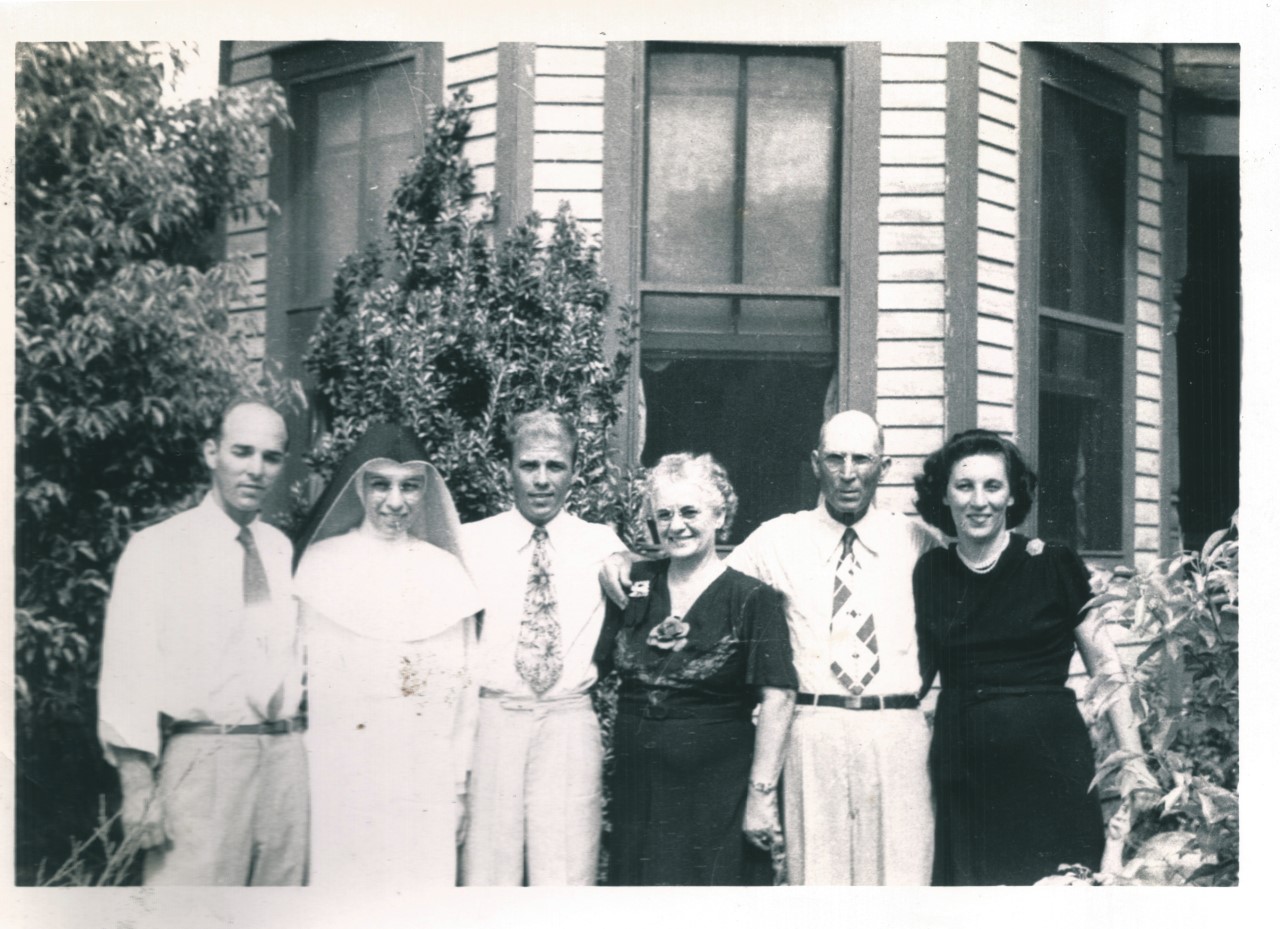 L to R: Harold J. McDaniel, Mary Elizabeth McDaniel, James Columbus McDaniel, Jr., Stella (Hebert) McDaniel, James Columbus McDaniel, Sr., and Myrtle Marie McDaniel(taken in Bayou Salle Louisiana at Gustave and Angelle Hebert's home)