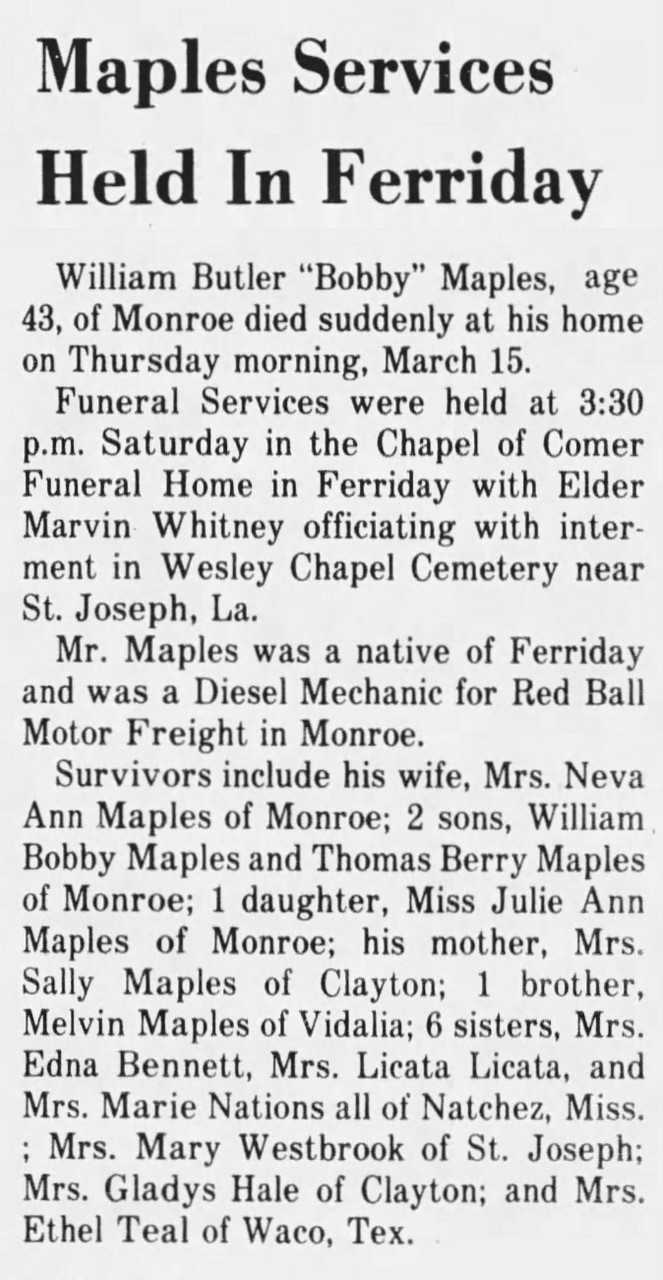 Extracted from The Tensas Gazette (Saint Joseph, LA)