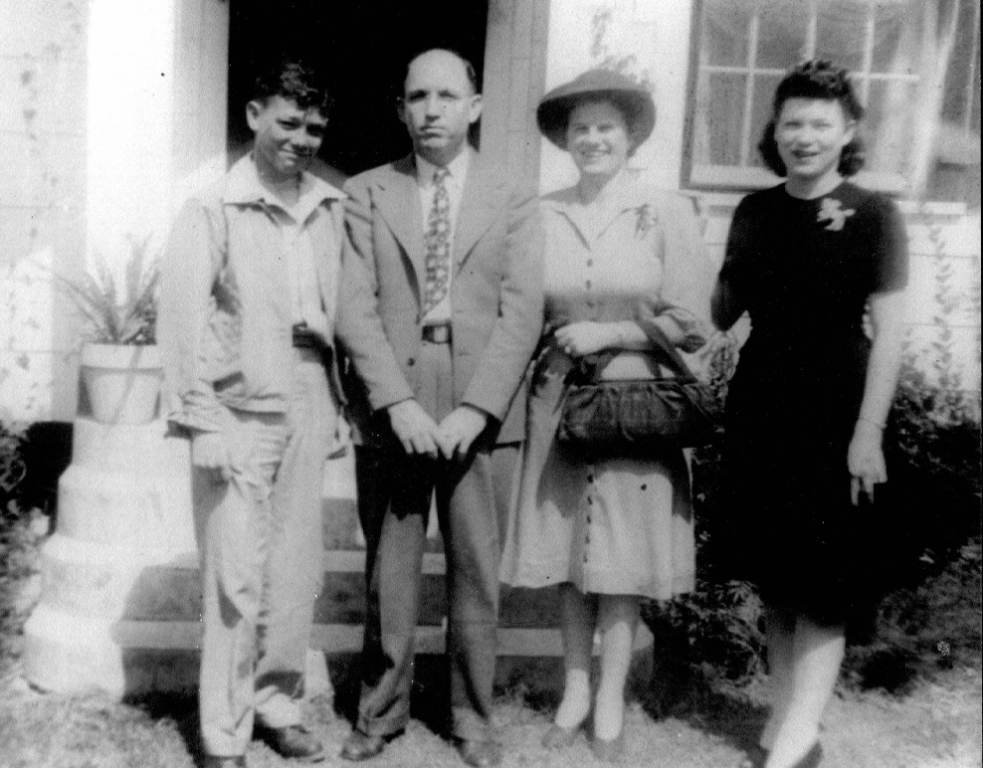 John Carvel Prince, Sr., Ellis Eri Prince, Ava Lee Simmons Prince, and Merle Glenwell Prince King in front of their home in Winnfield, LA.