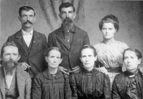 Front Row (L to R): Jesse Goodman, Jr., Mary Elizabeth Splawn Goodman, Lizzie Goodman Power, and Minerva Goodman Barr