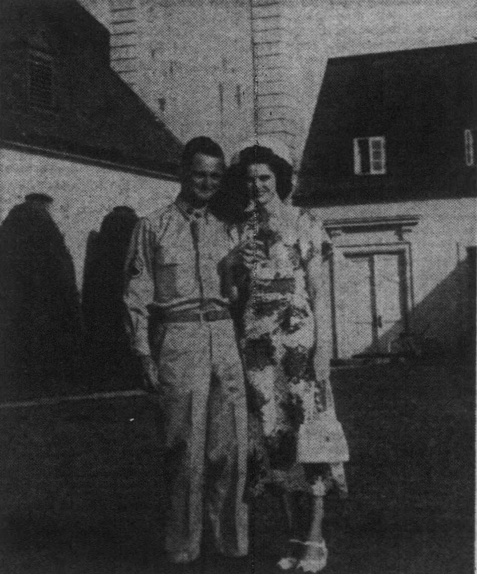 BRIDE AND GROOM -- Staff Sgt. and Mrs. Billy R. Vickery are shown outside the chapel at Barksdale Field, La., following their wedding ceremony performed there Wednesday evening, May 4. Mrs. Vickery is making her home here in Marshall temporarily, after which she expects to join Sgt. Vickery in Alaska.