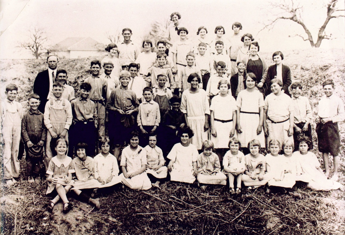 ![]() Principal: John D. Barnett Bottom Row (L to R): Estelle Murray, Ina Powers, Ruby Smith, Frances Figarato, Angela Ponzio, Bessie Pomilio, Annie Smith, Nellie Barnett, Allie Dell Bullock, Inez Murray, Gertrude Barnett, Laura Figarato Second Row (L to R): B. D. Foster, William (Slick) Powers, Raymond Moore, Allen Worsham, Elmer Murray, Hardy Thompson, Sammy Pomilio, Lucy Pomilio, Marie Smith, Annie Dominik, Dulcie Smith, Tiny DeHart, Melvin DeHart Third Row (L to R): Leldon Thompson, Arnold Murray, Louis Bullock, Jack Figarato, Elbert Bullock, Duward Garner, John Powers, Woodrow Worsham, Mattie Moore (teacher) Fourth Row (L to R): Ruby Foster, Jim Handy, Erma Bullock, Lamar Garner, Altus Garner, Lum Powers, Tracy Dominik, Laura Mims Top Row (L to R): Evelyn Handy, Gladys Bullock, Bessie Worsham, Mertie Bullock, Vera Smith |