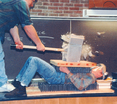 There are several ways to format the visit, and high school teachers are encouraged to contact us to discuss the different programs that we offer. We usually begin the day with a Planetarium Show, which includes explanations of basic physics principles. The show is held at the KSU Planetarium, which is located in Smith Hall. We continue with a ``Fun with Physics'' demonstration given by faculty and graduate students. One highlight of this is the ``bed of nails'' demonstration (see middle image below).